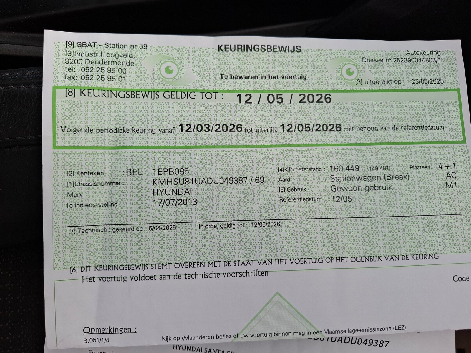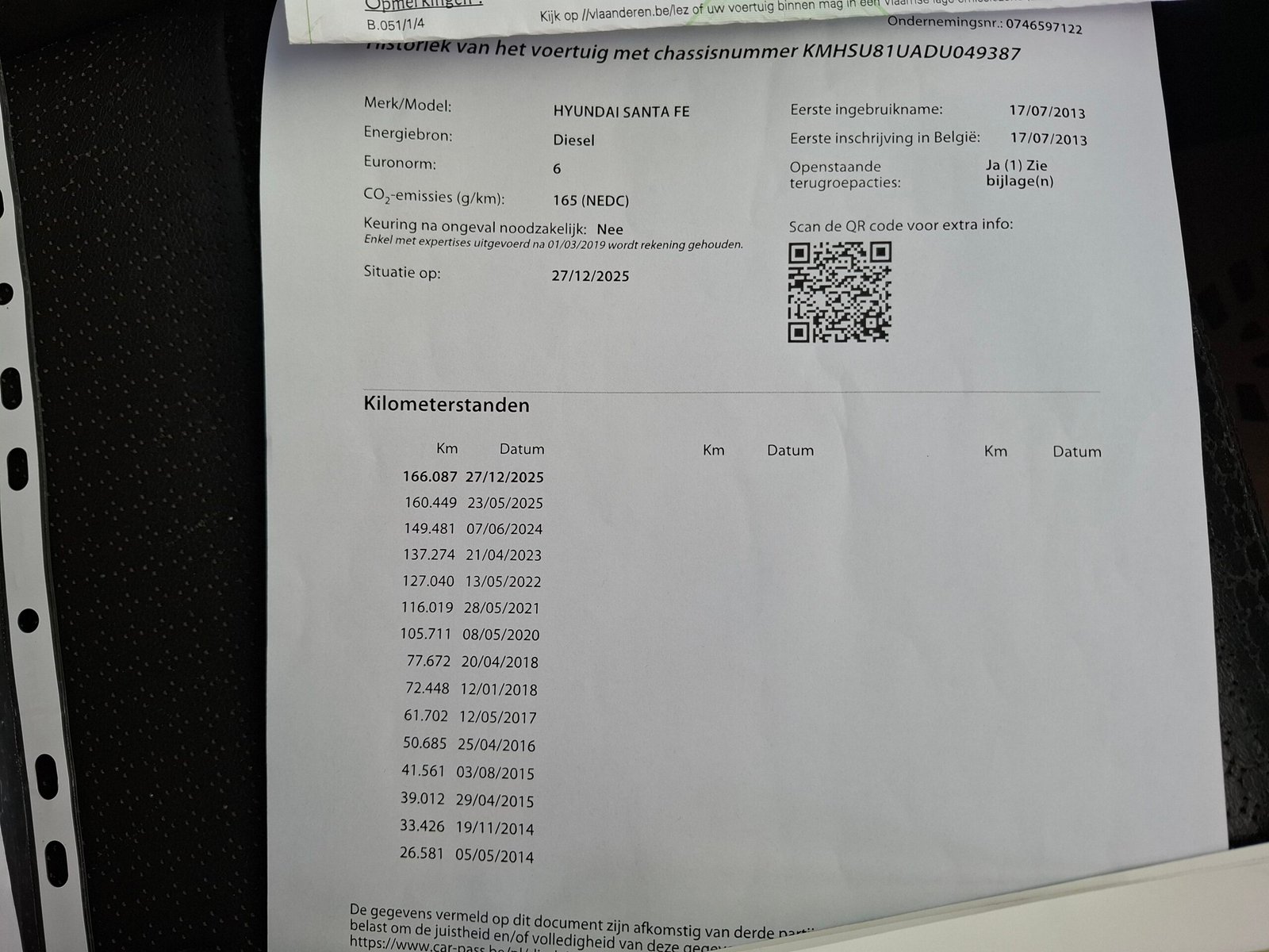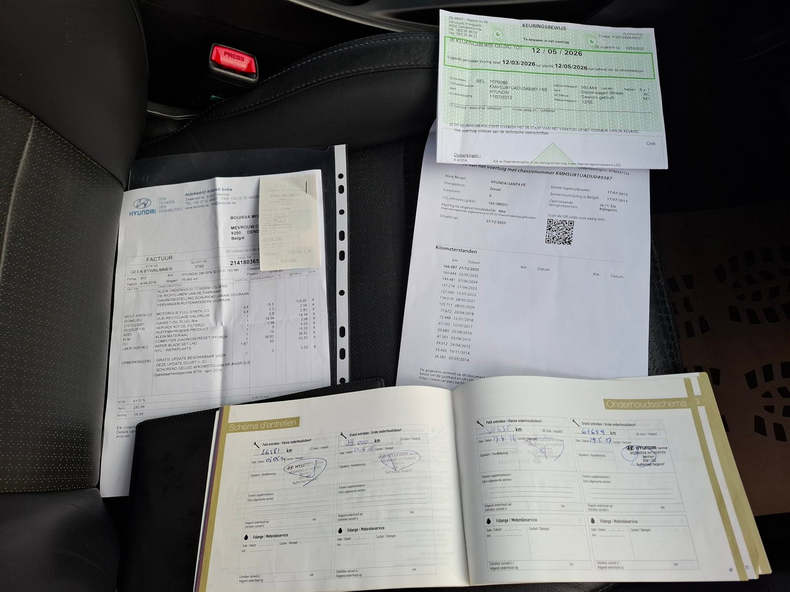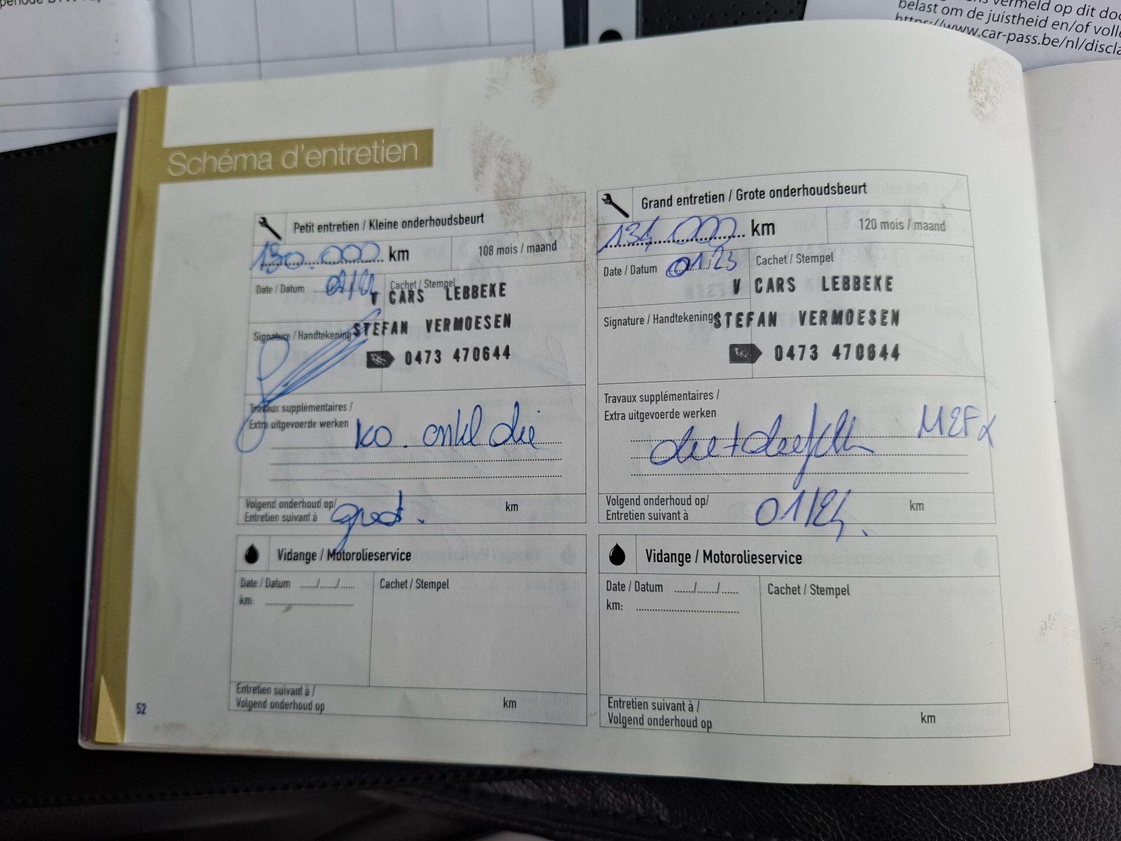 Carte service, ITP Belgia cu km, dată, numar identificare. Carpass.