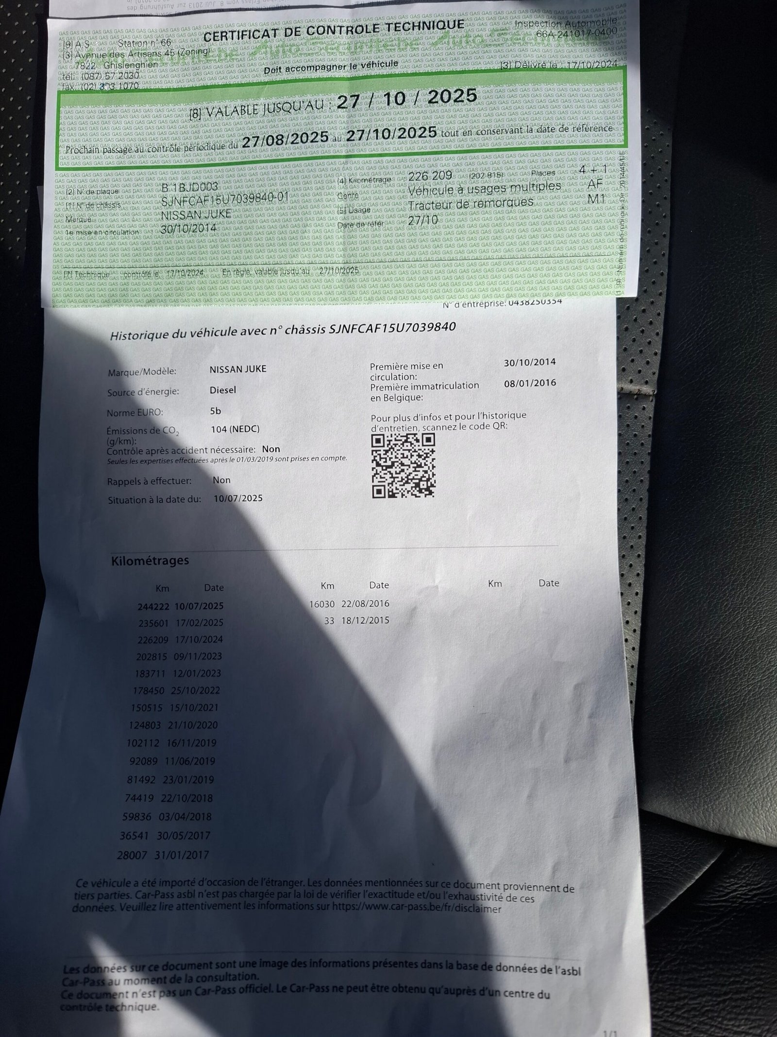 Nissan Juke 1.5 dCI , 2014 , 245940 km , SJNFCAF15U7039840