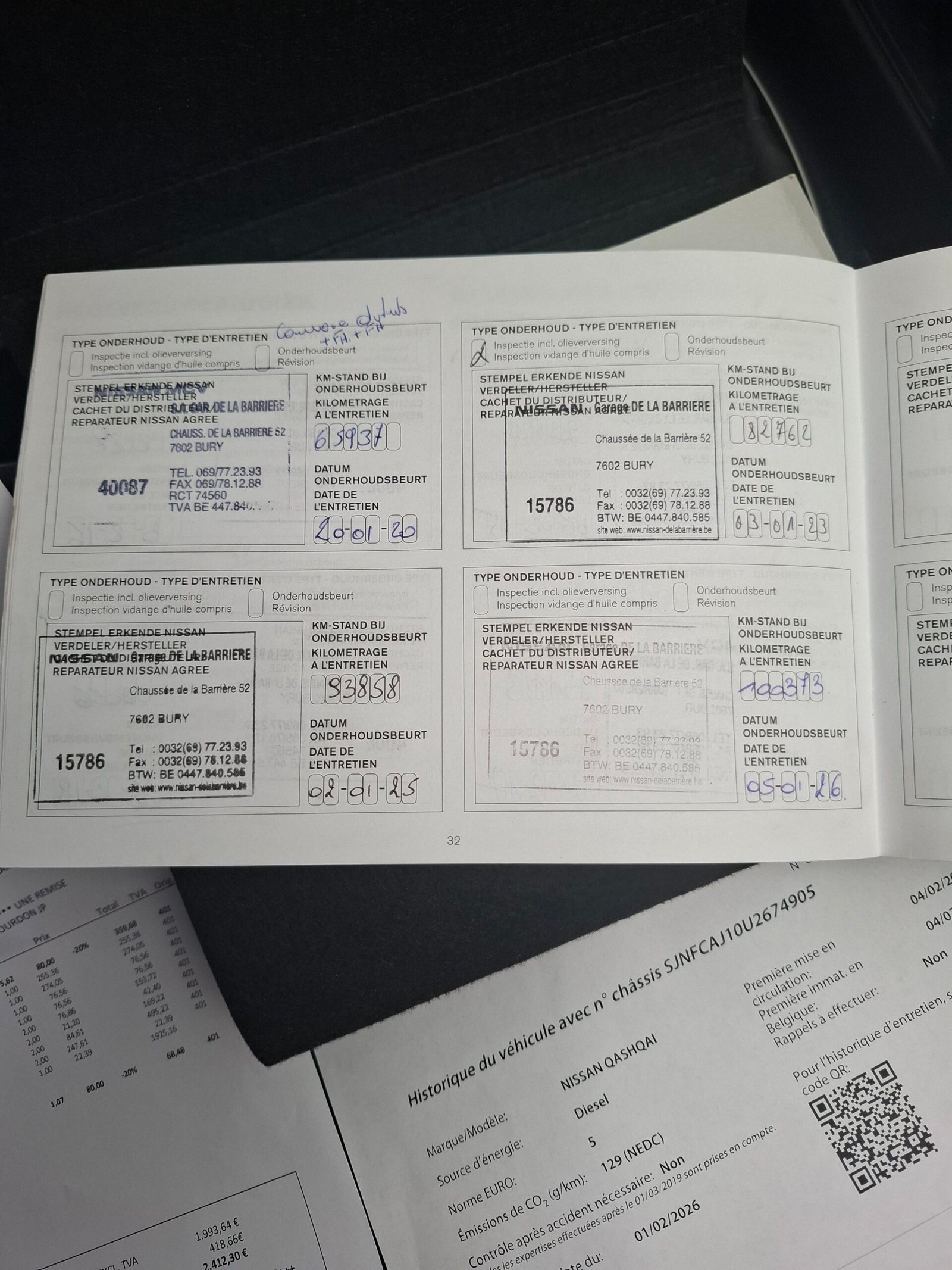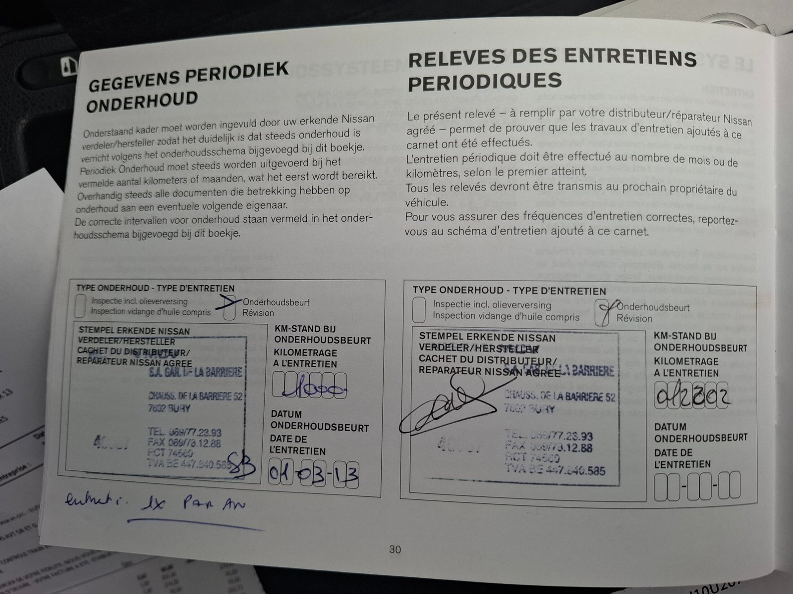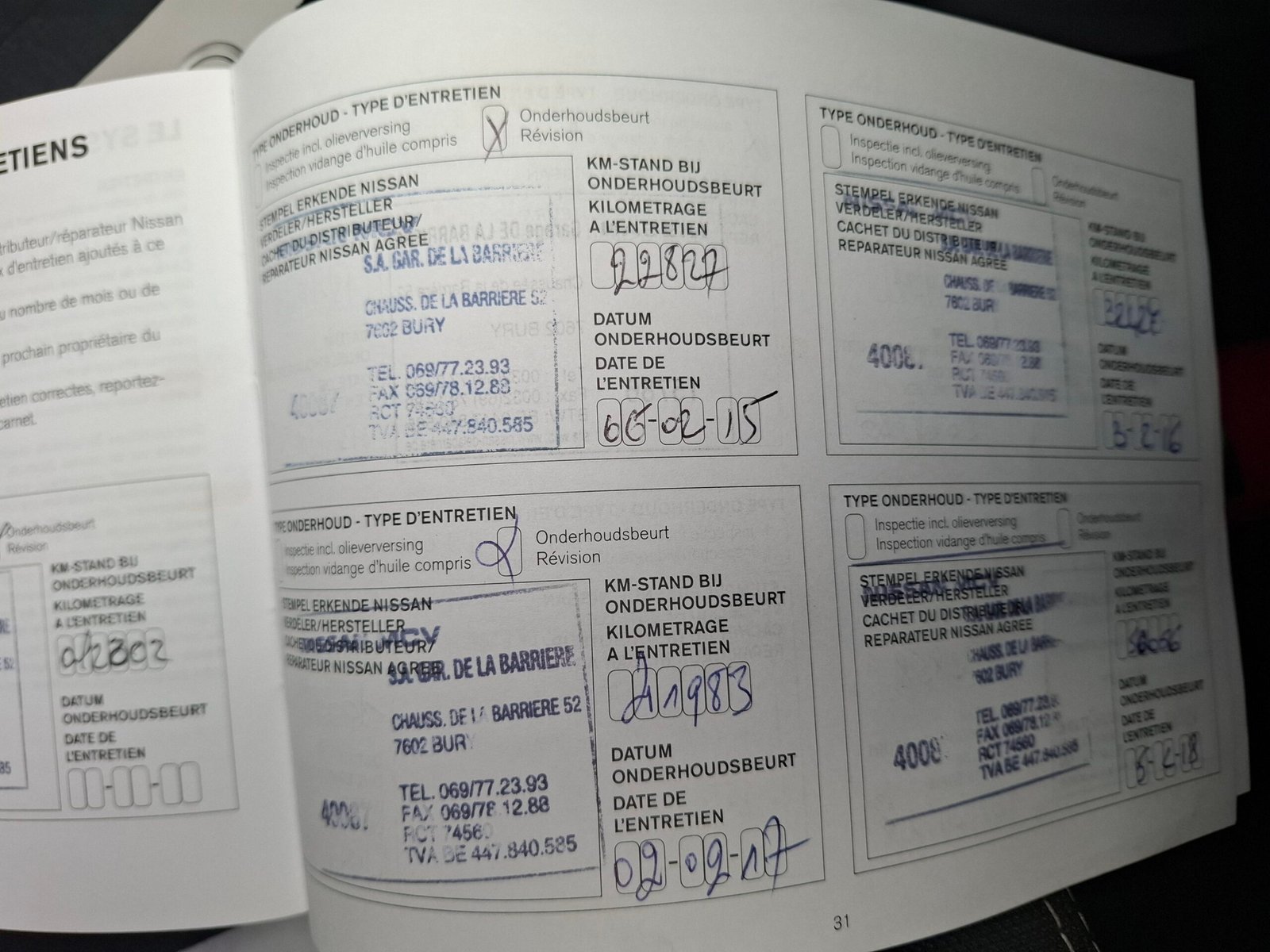 Carte service, ITP Belgia cu km, data, nr identificare auto. Carpass.