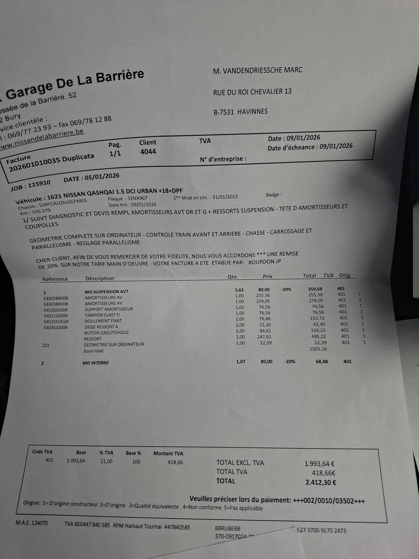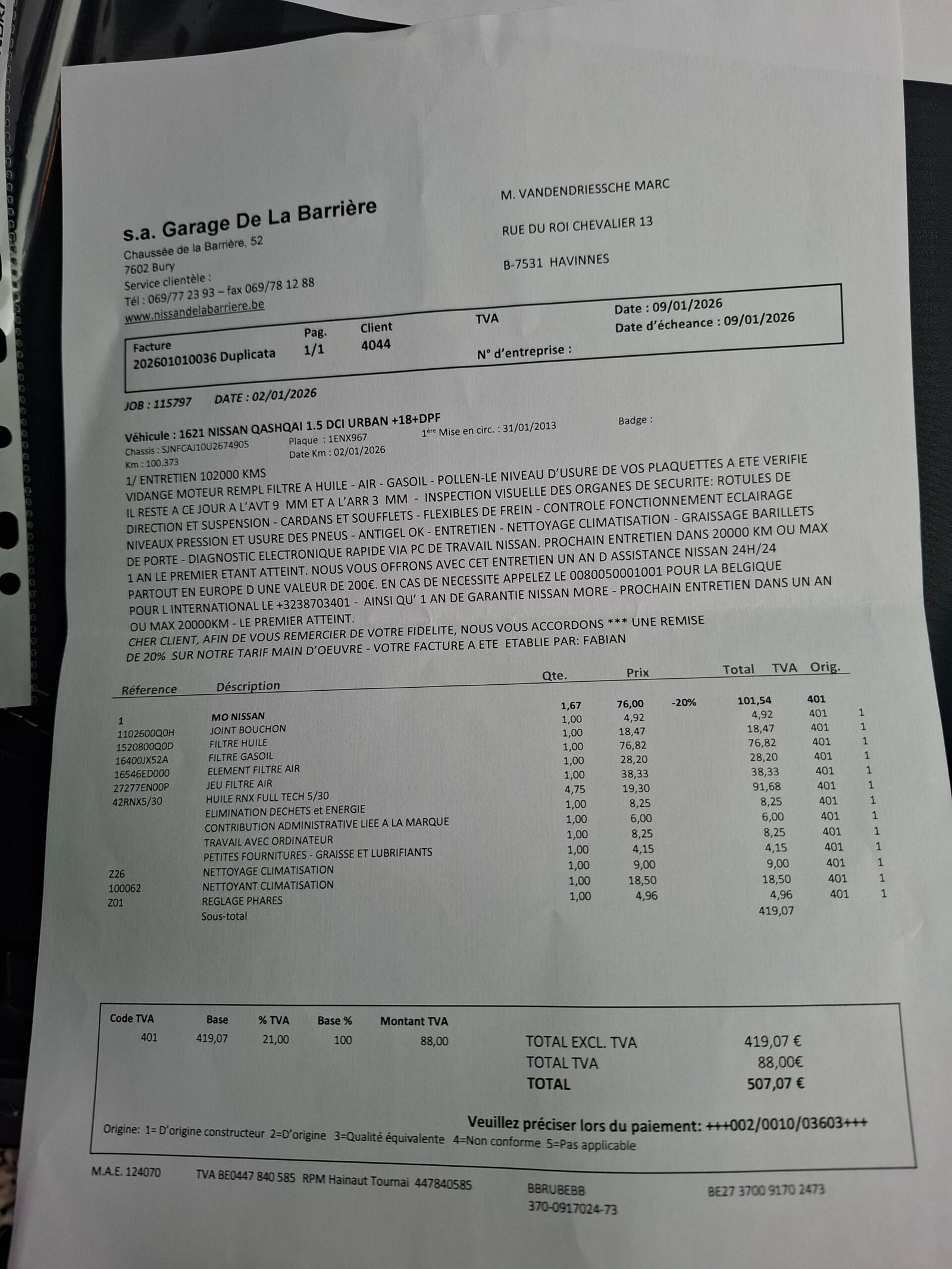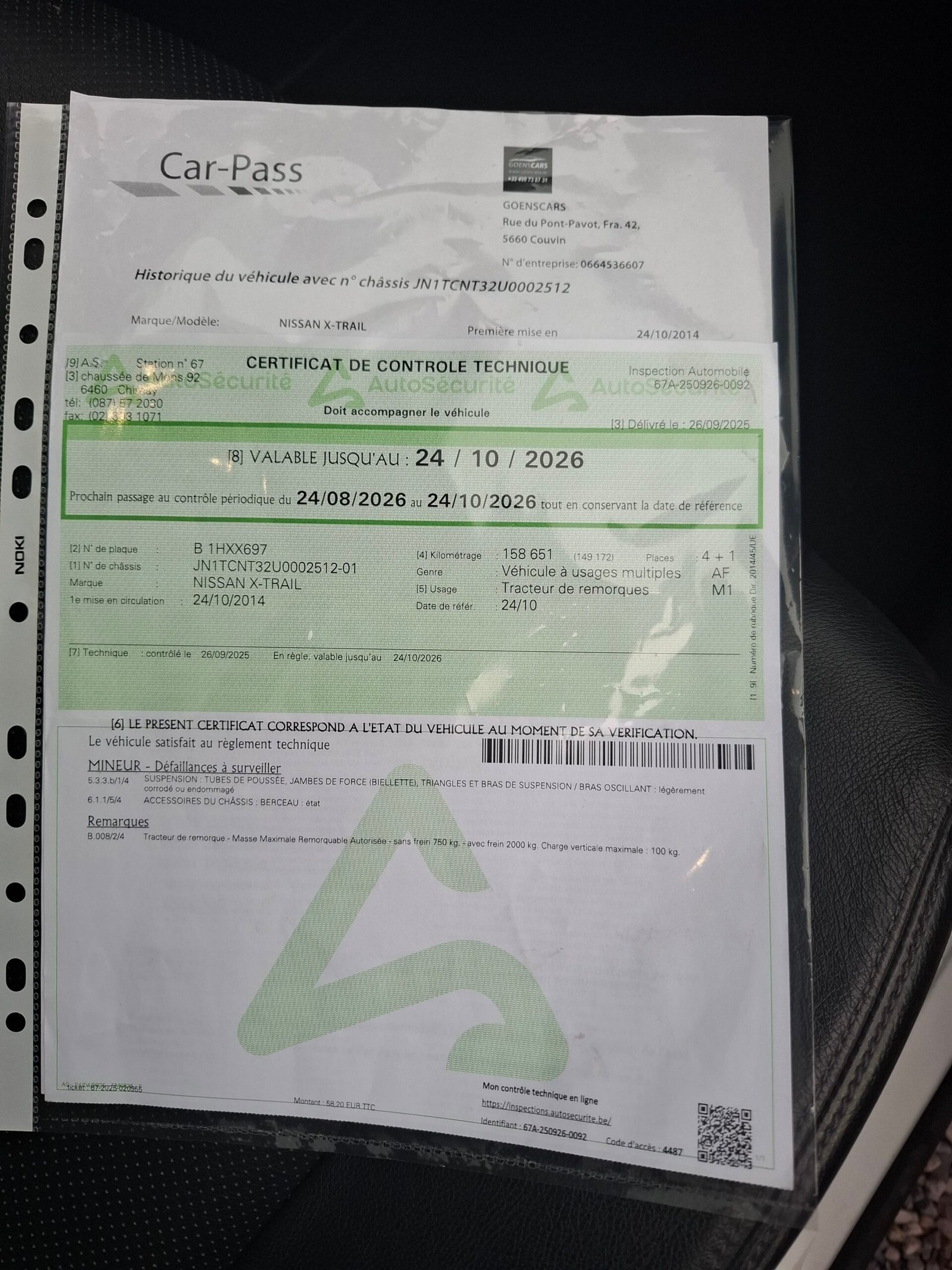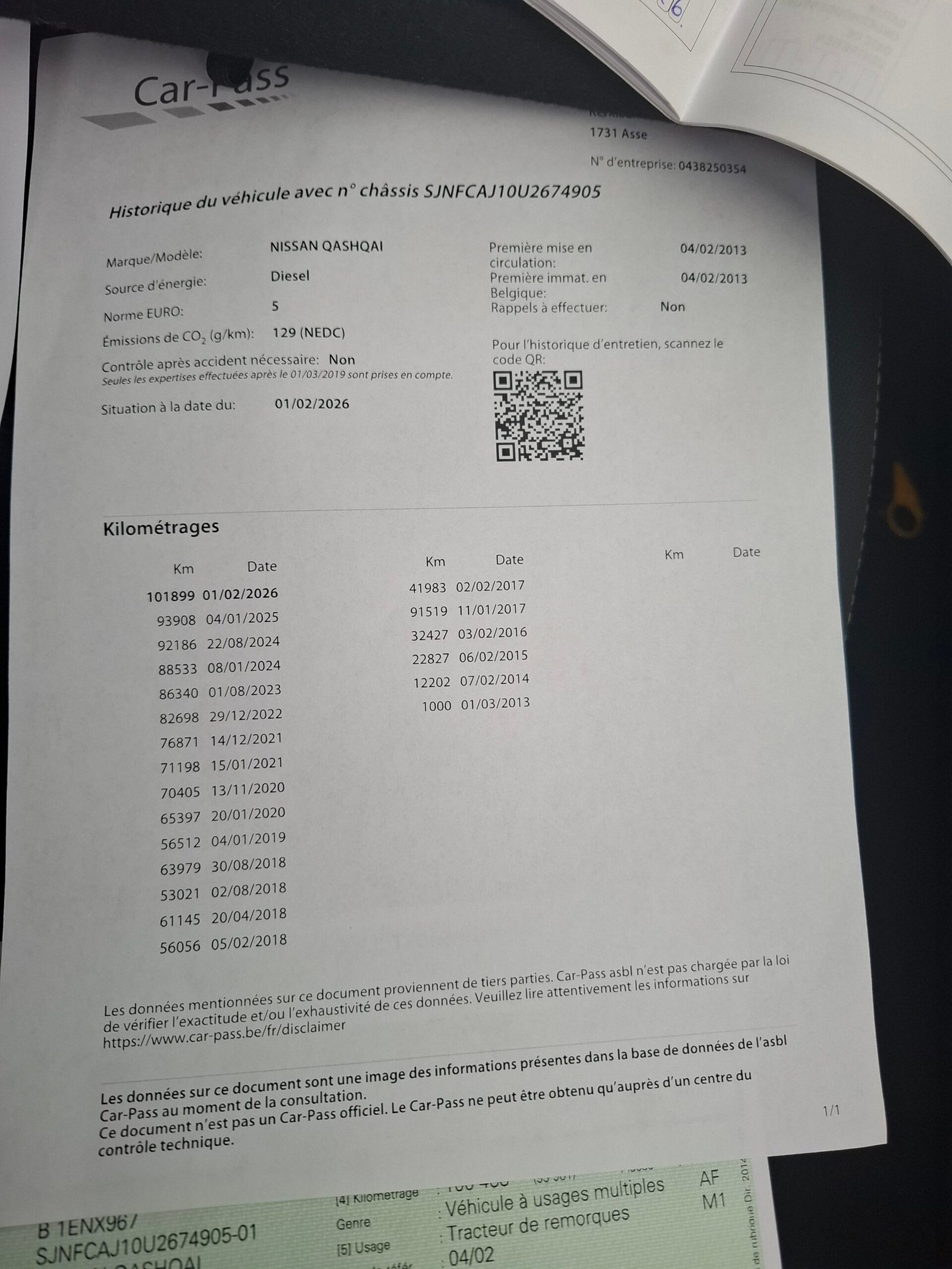 Carte service, ITP Belgia cu km, data, nr identificare auto. Carpass.
