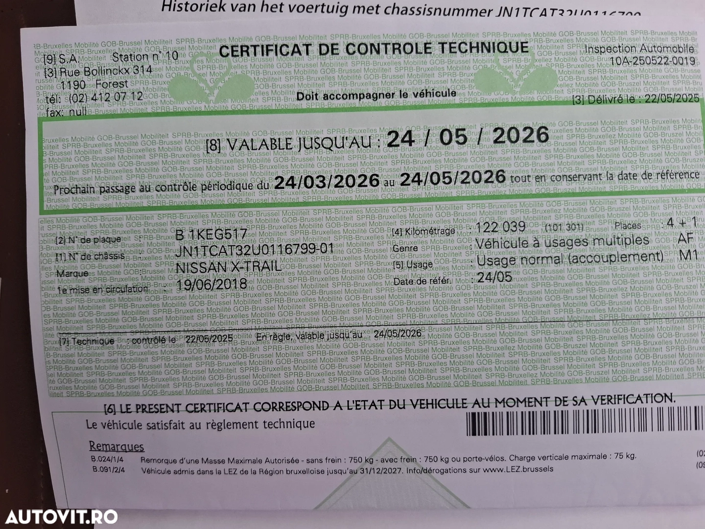 Carte service, ITP Belgia cu km, data, nr identificare auto. Carpass.