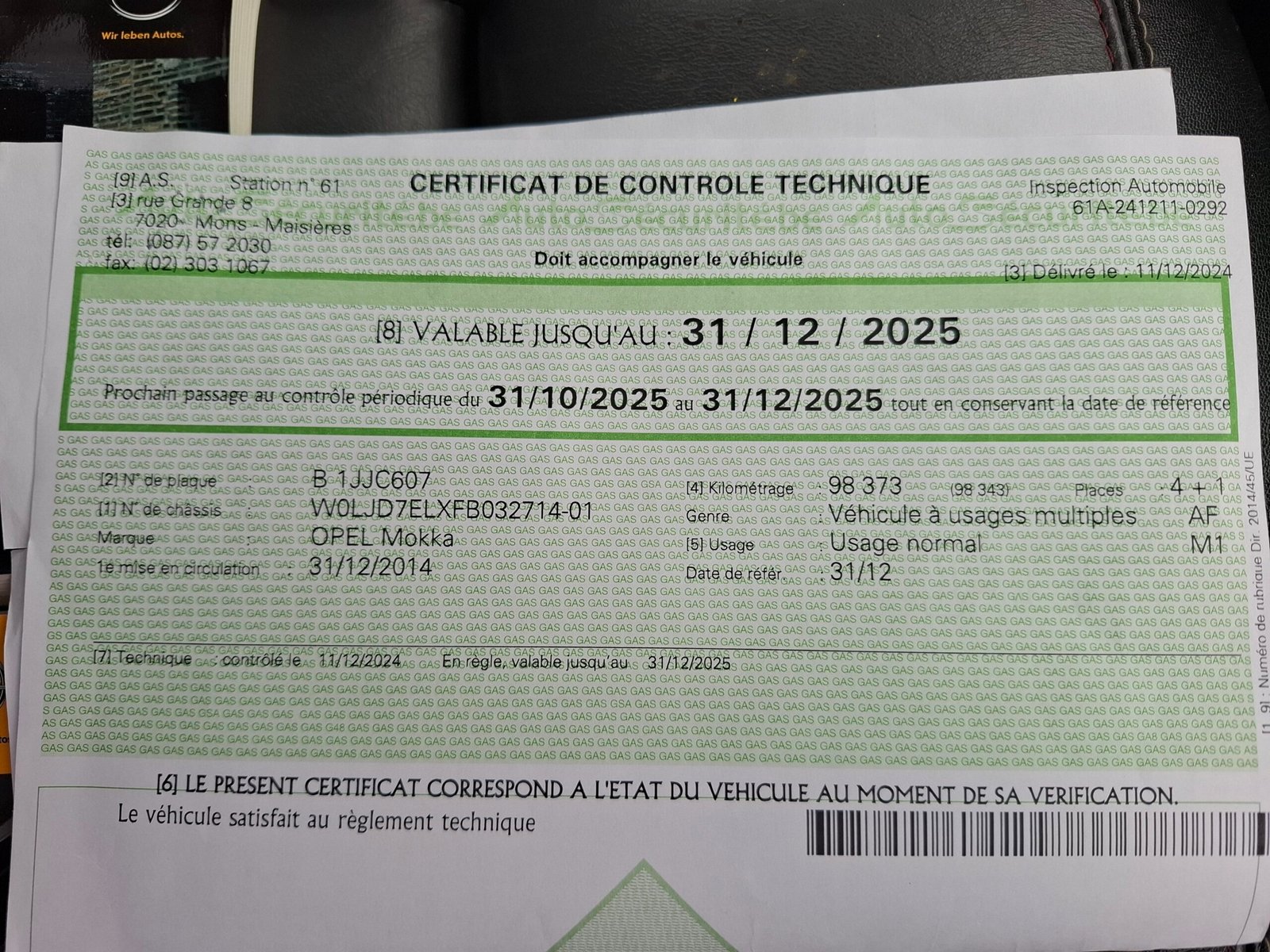 Carte service, ITP Belgia cu km, dată, numar identificare. Carpass.